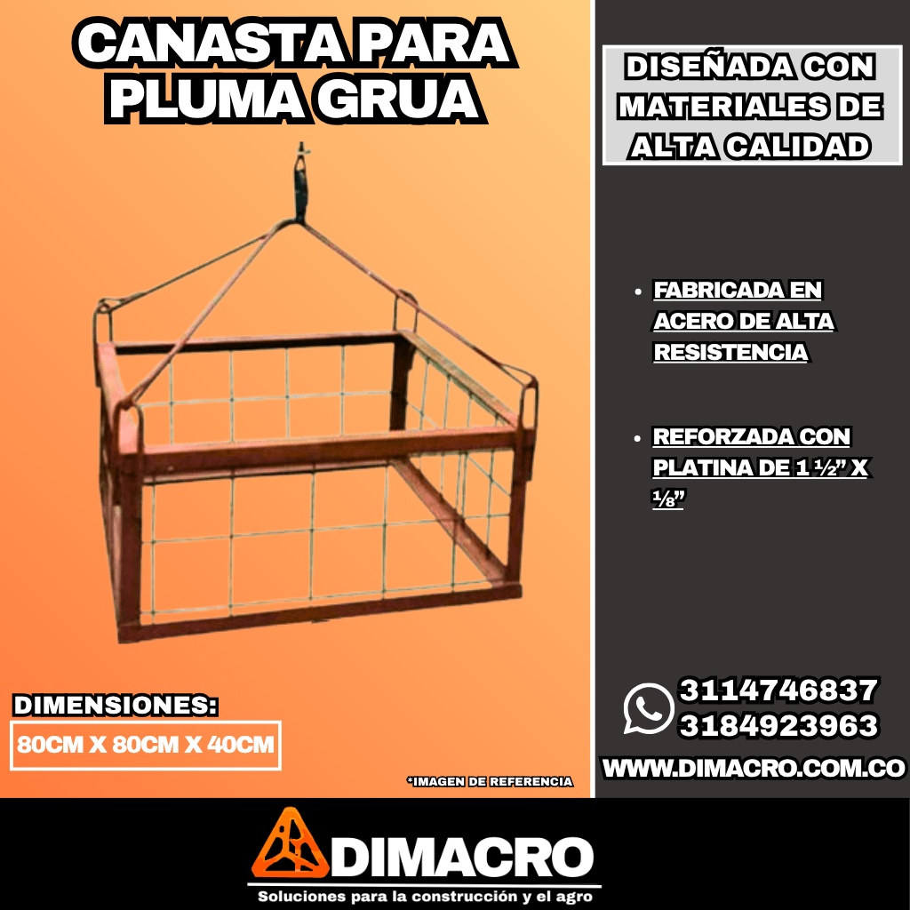 La Canasta o canastilla de Pluma Grúa es un accesorio fácil de instalar en la pluma de la grúa y es ajustable para adaptarse a diferentes alturas de trabajo, lo que te permitirá ahorrar tiempo y aumentar tu eficiencia en la obra.